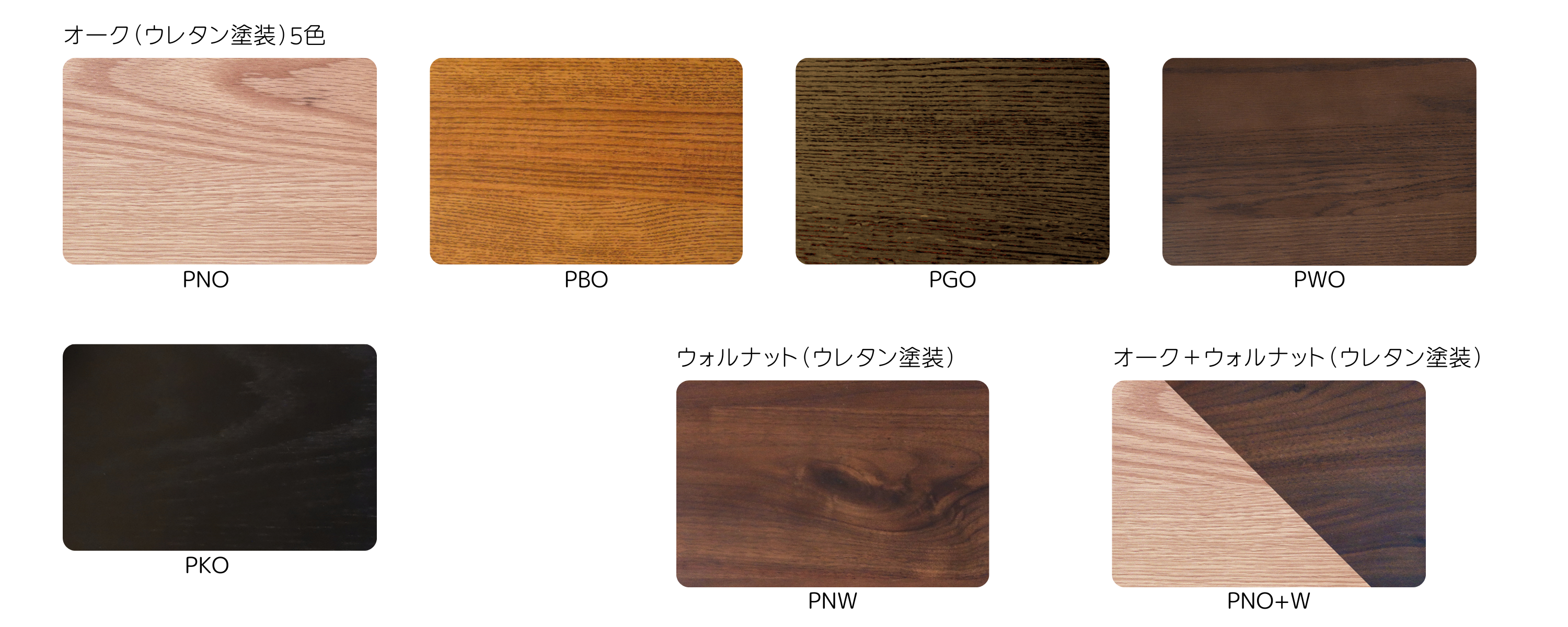 明るく元気がでてくるような木地色が魅力のレッドオークタイプと、高級材として知られている北米産ウォルナットとオークを組み合わせたコンビネーションタイプがあります。
